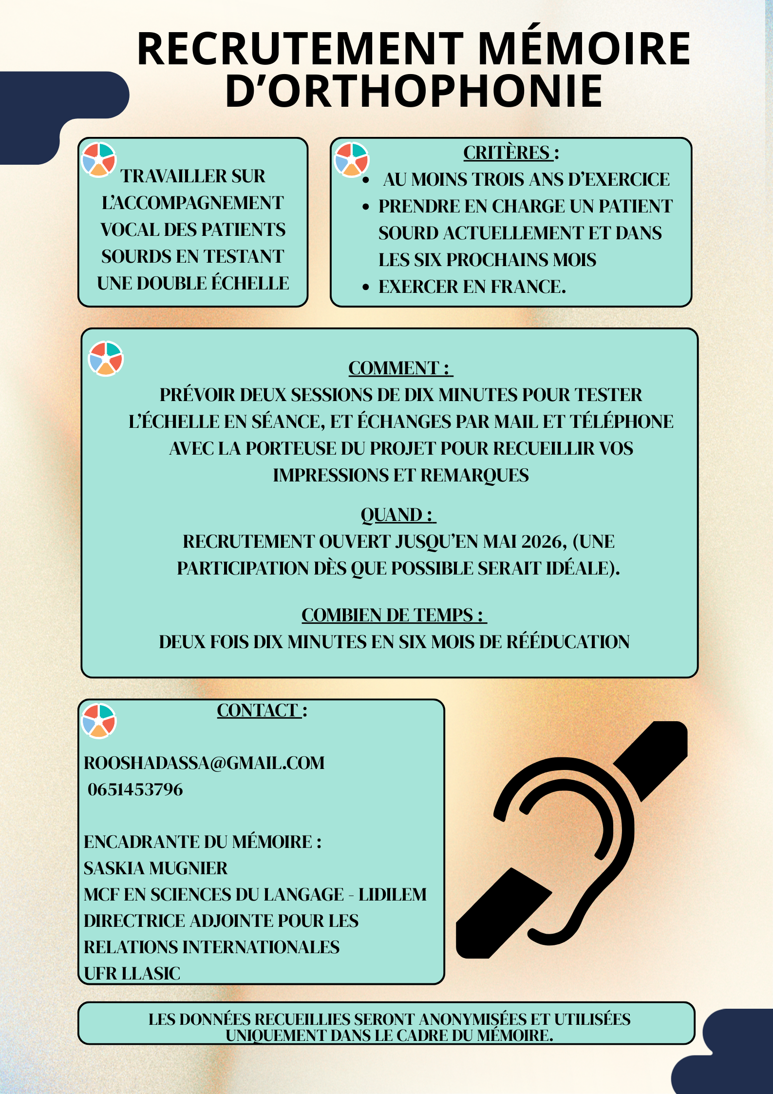 Le projet du mémoire est de travailler sur l’accompagnement vocal des patients sourds en testant une double échelle.